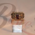 Chevalière plaquée or qui prône en sont centre une pierre rouge