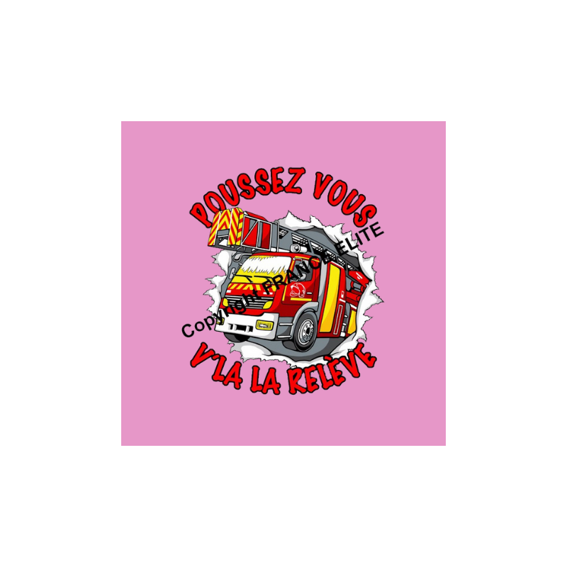 T-shirt enfant Rose logo camion pompier POUSSEZ-VOUS VOILA LA RELEVE !