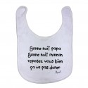 Bavoir "Bonne nuit papa bonne nuit maman reposez vous bien ça va pas durer"100% COTON